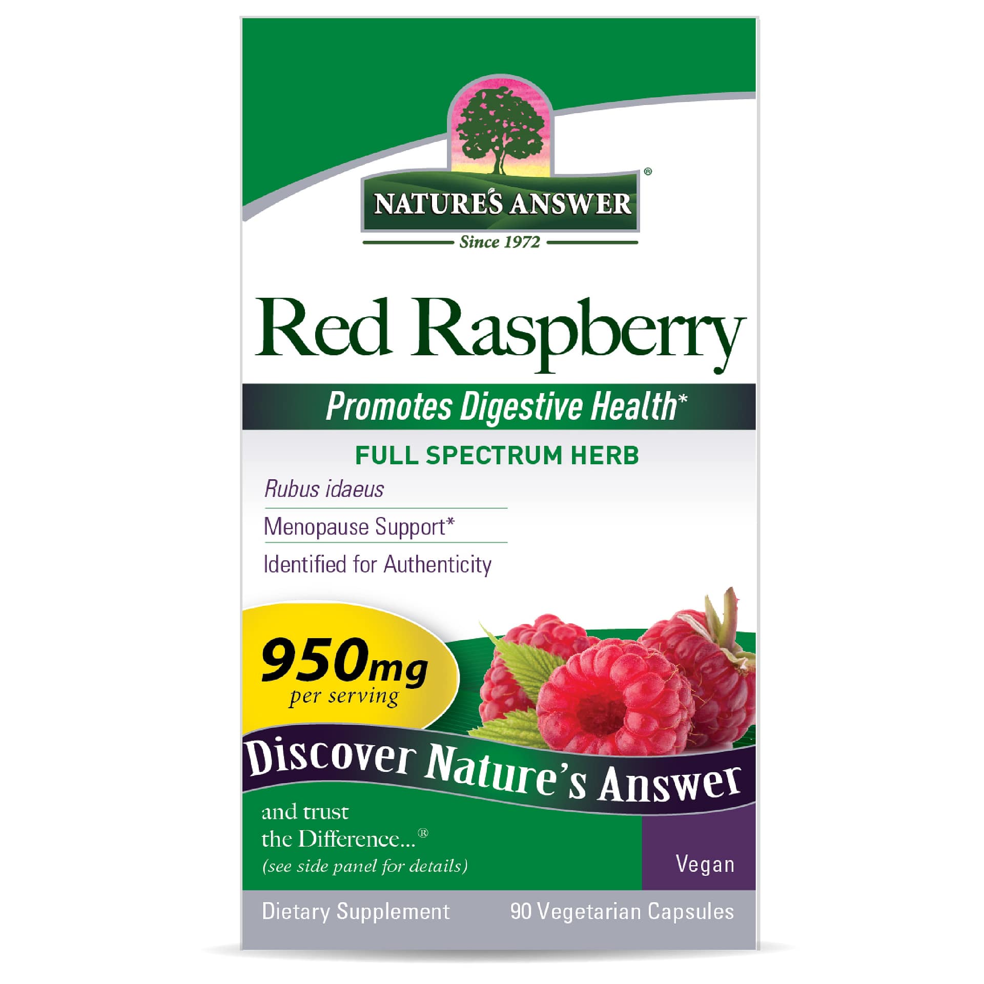 Nature’s Answer Red Raspberry is made from 950mg of red raspberry per serving promoting optimal digestive health.*